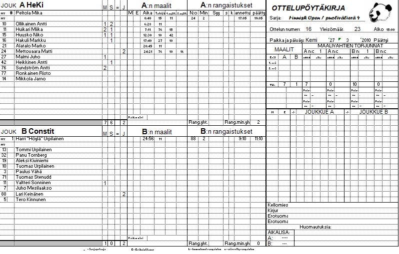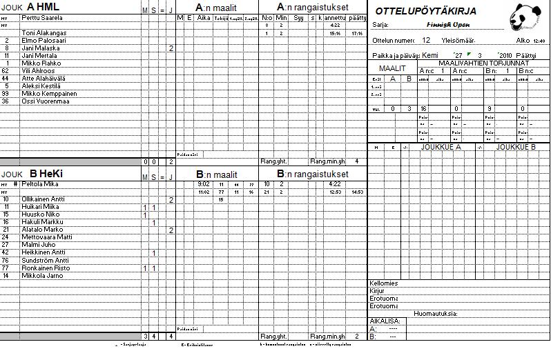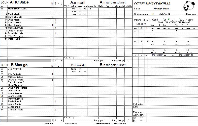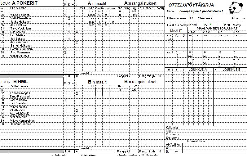 | 13. | 13:20 | A1 Pokerit | vs. | B4 HML | 5 | - | 1 | Pokerit | vuoden 2010 turnauksen mestari. | ||||||||
