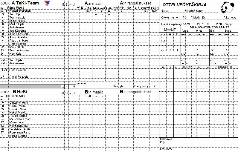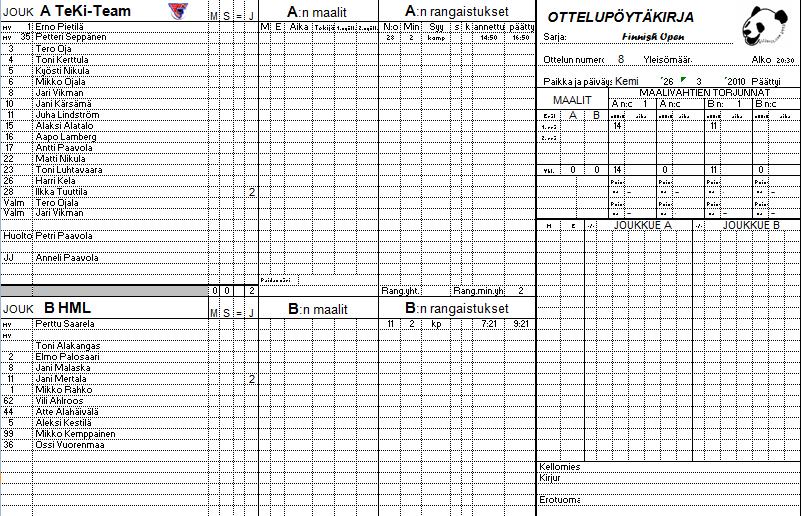 | 10. | 11:30 | TeKi | vs. | HeKi | 2 | - | 1 | O | V | T | H | TM | PM | +/- | P | ||