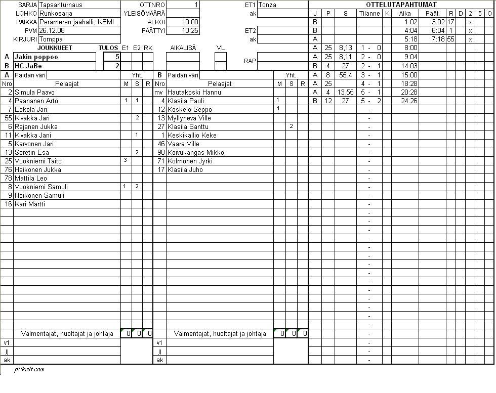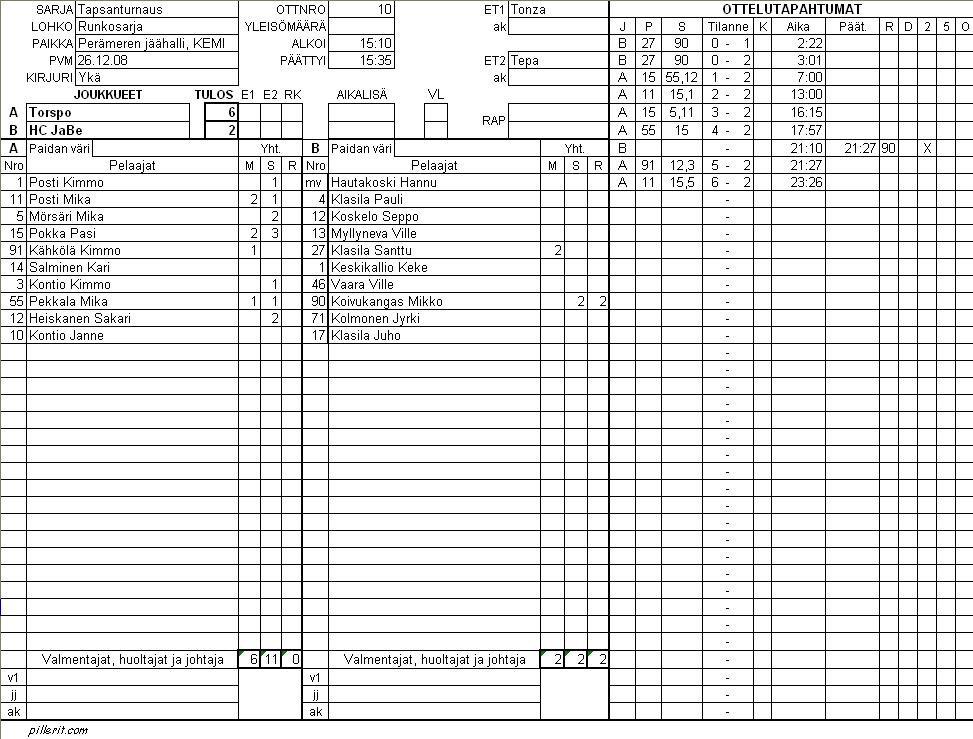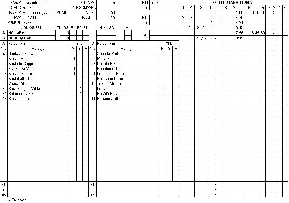 | 6. | 12:50 | HC JaBe | vs. | HC Billy Bob | 3 | - | 1 | SARJATAULUKKO B-lohko | |||||||||