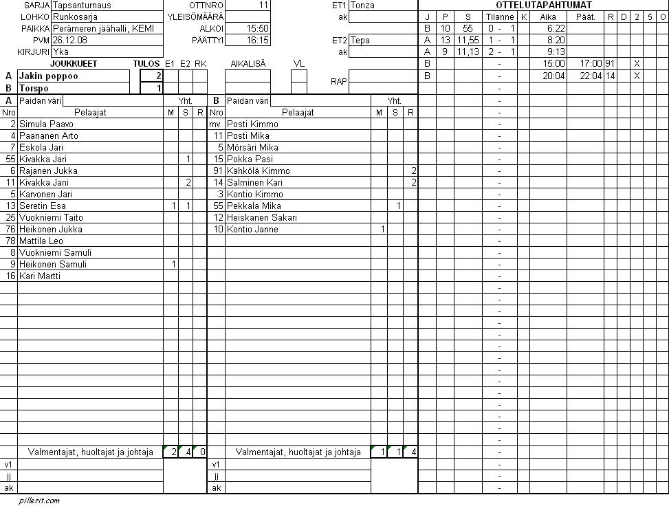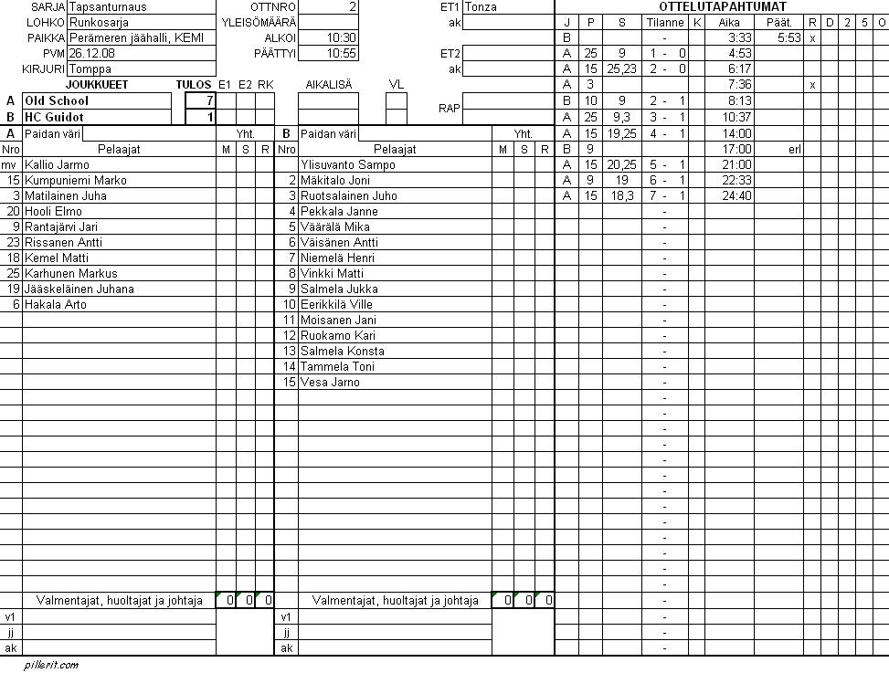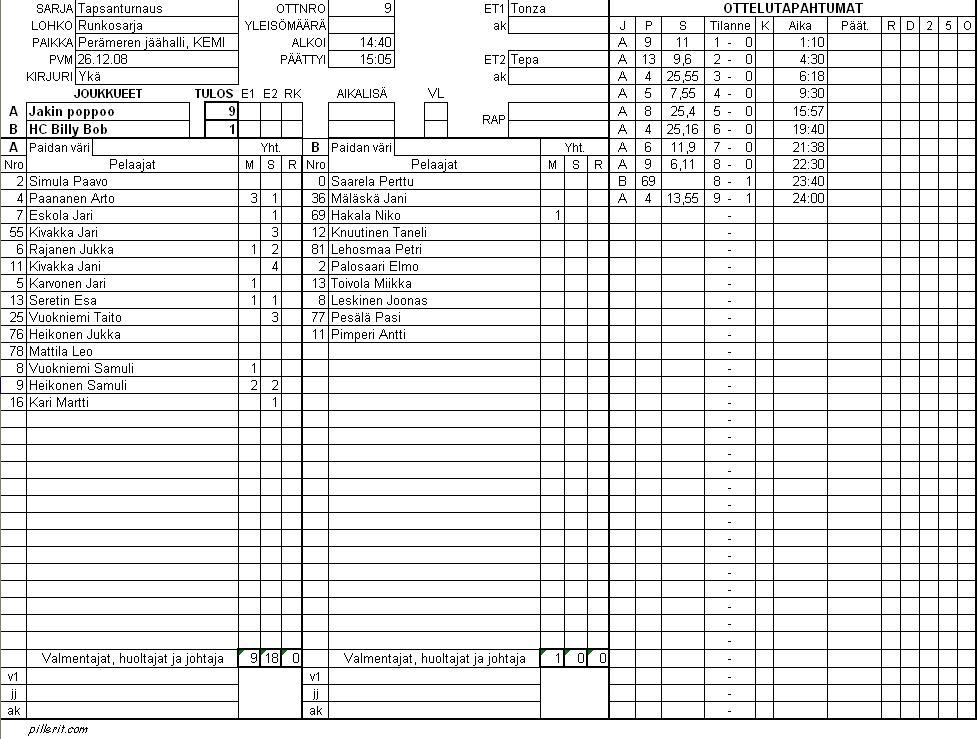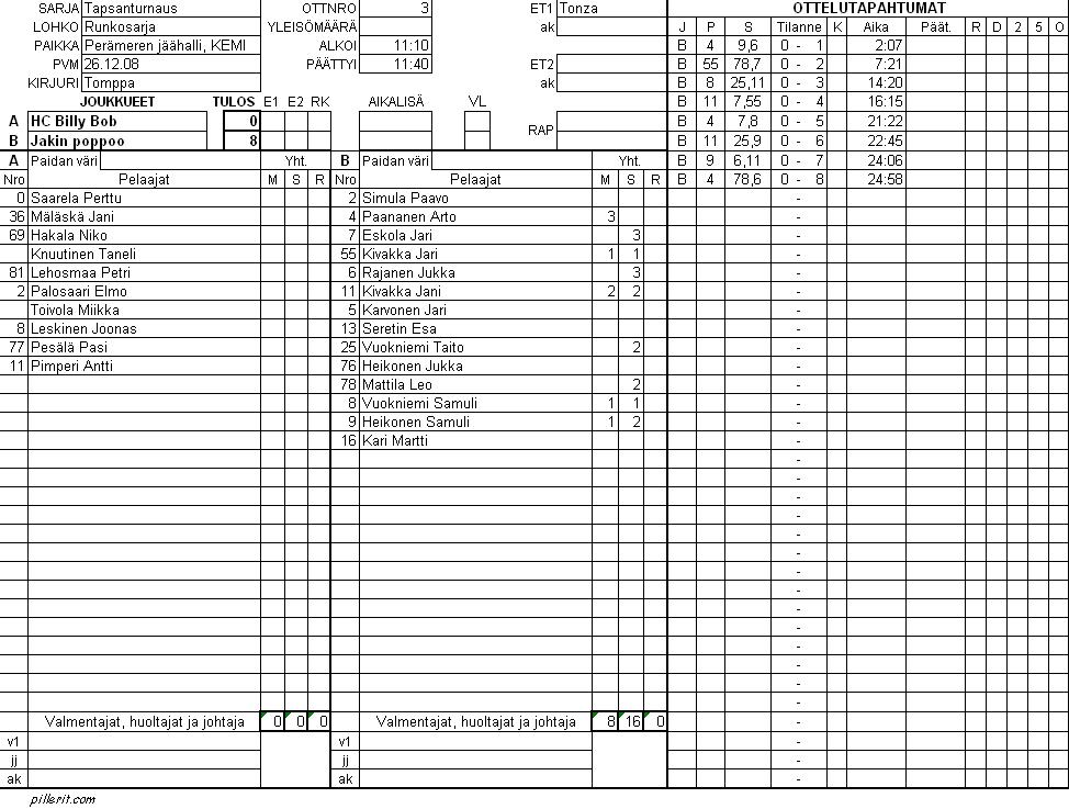 | 9. | 14:40 | Jakin poppoo | vs. | HC Billy Bob | 9 | - | 1 | Kuvia | |||||||||