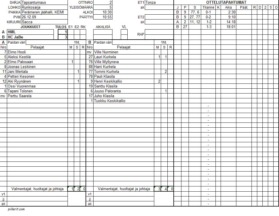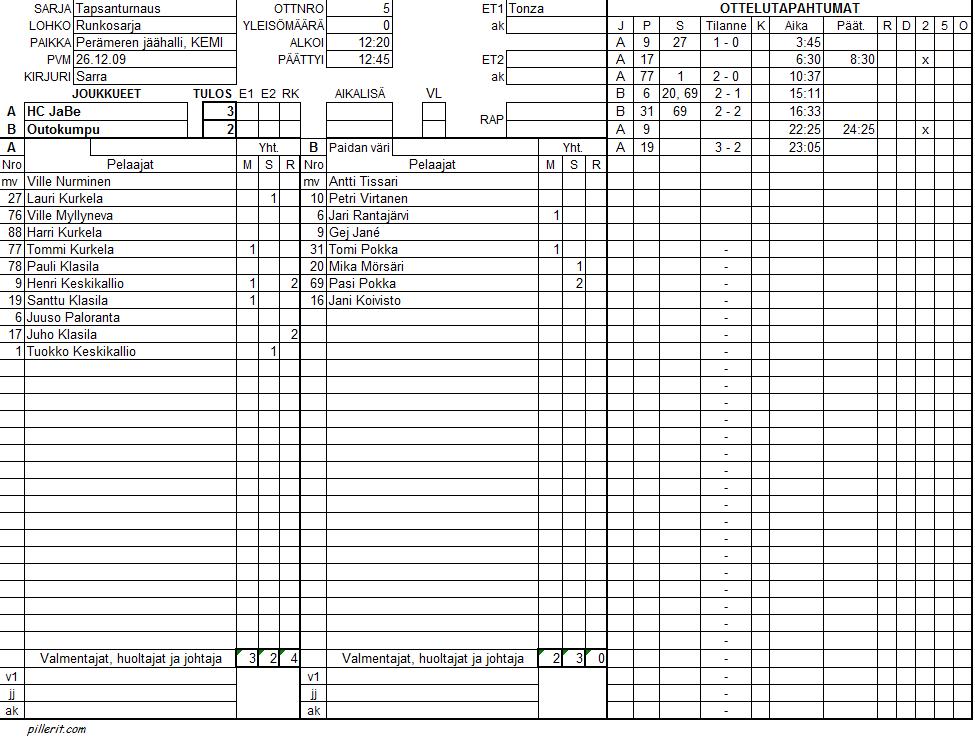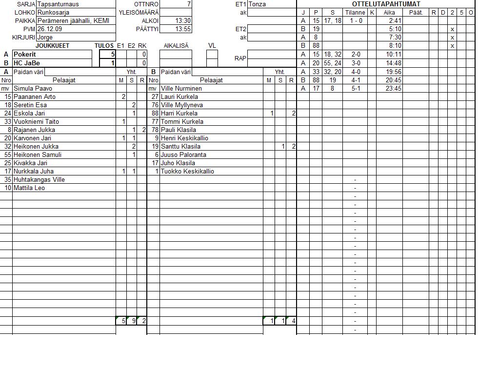 | 5 | 12:20 | HC JaBe | - | Outokumpu | 3 | - | 2 | Pokerit | Tapsanturnauksen mestari 2009 | ||||||||