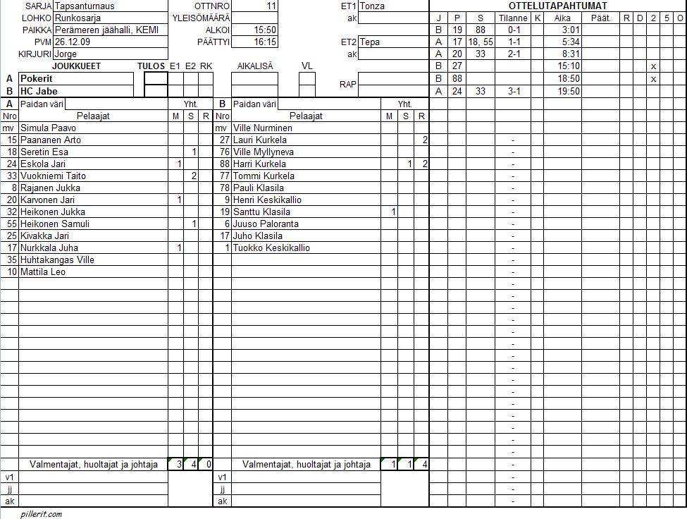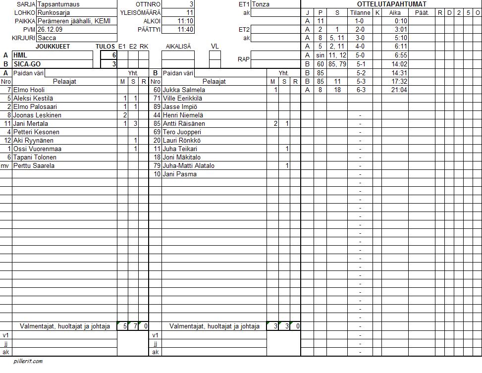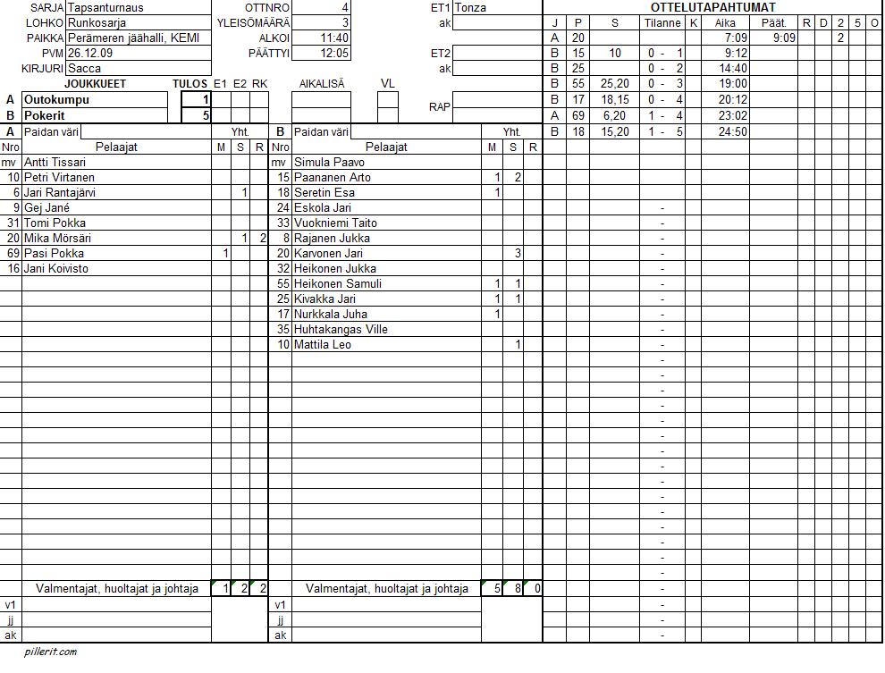 | 4 | 11:40 | Outokumpu | - | Pokerit | 1 | - | 5 | ||||||||||
