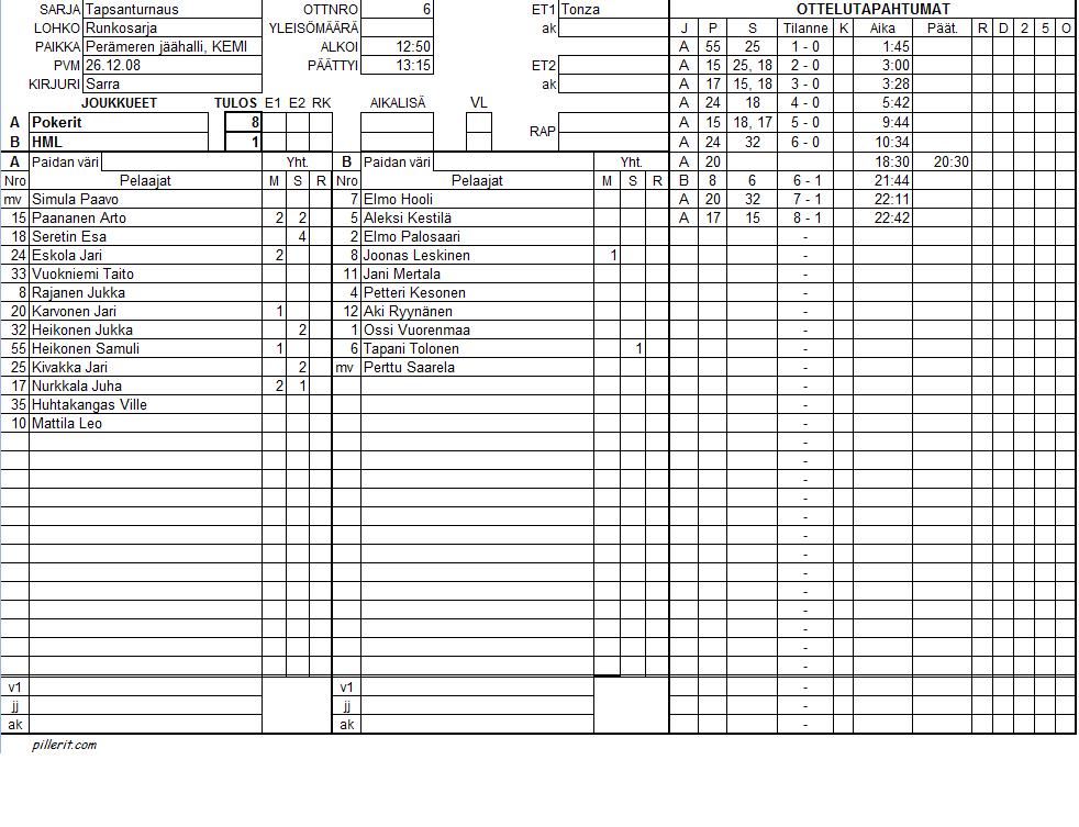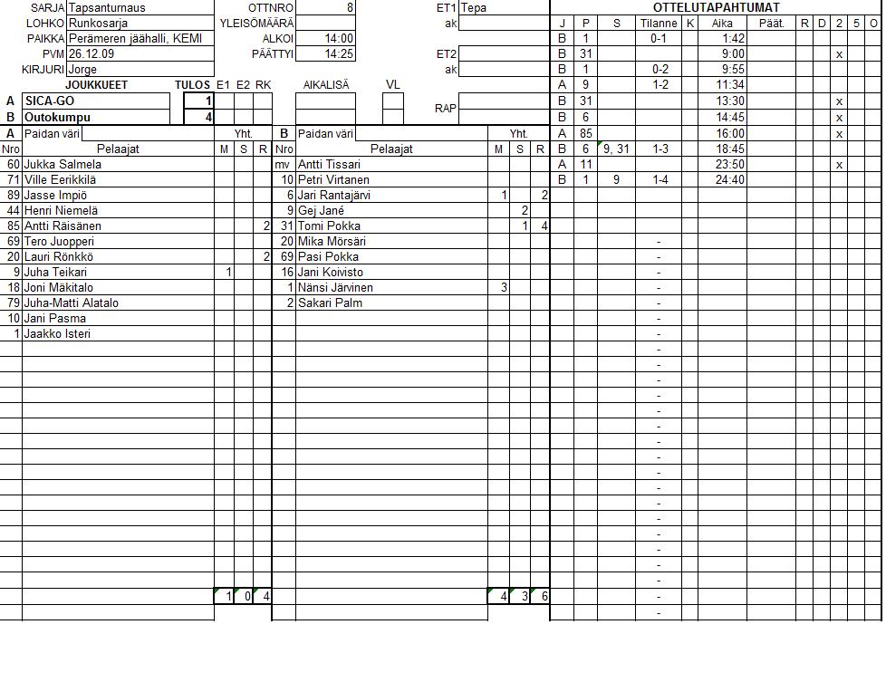 | 8 | 14:00 | SICA-GO | - | Outokumpu | 1 | - | 4 | Kuva5 | Kuva6 | Kuva7 | Kuva8 | ||||||