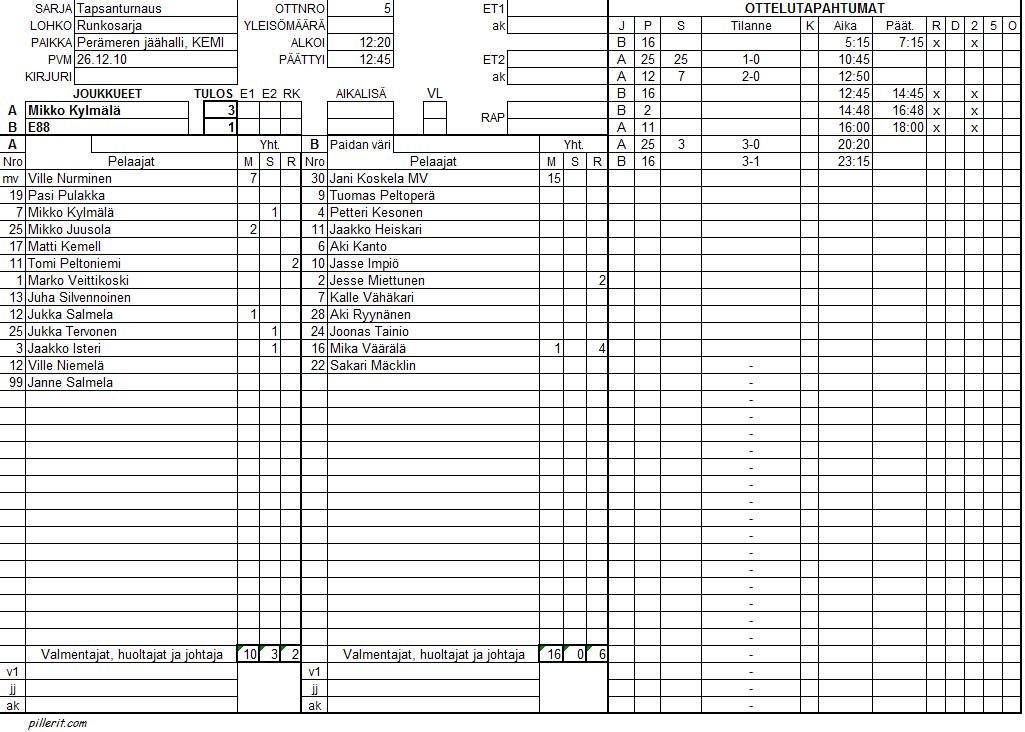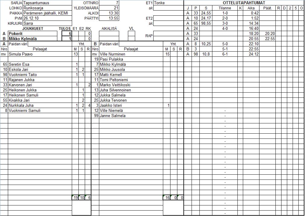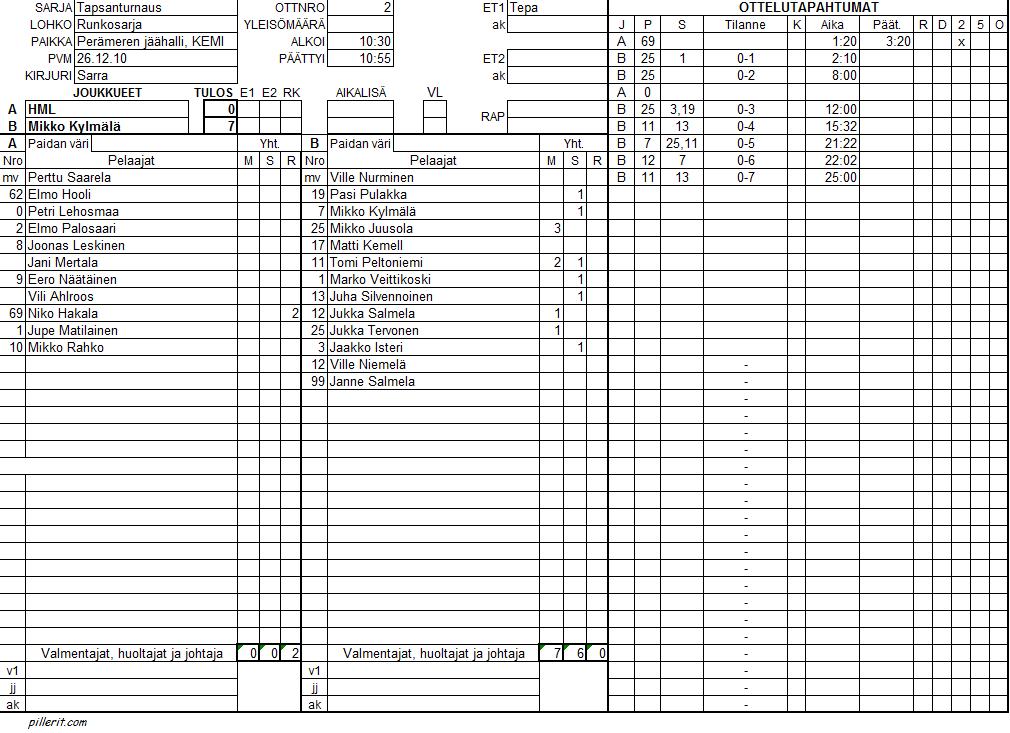 | 2 | 10:30 | HML | - | Mikko Kylmälä | 0 | - | 7 | |
