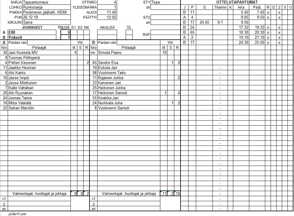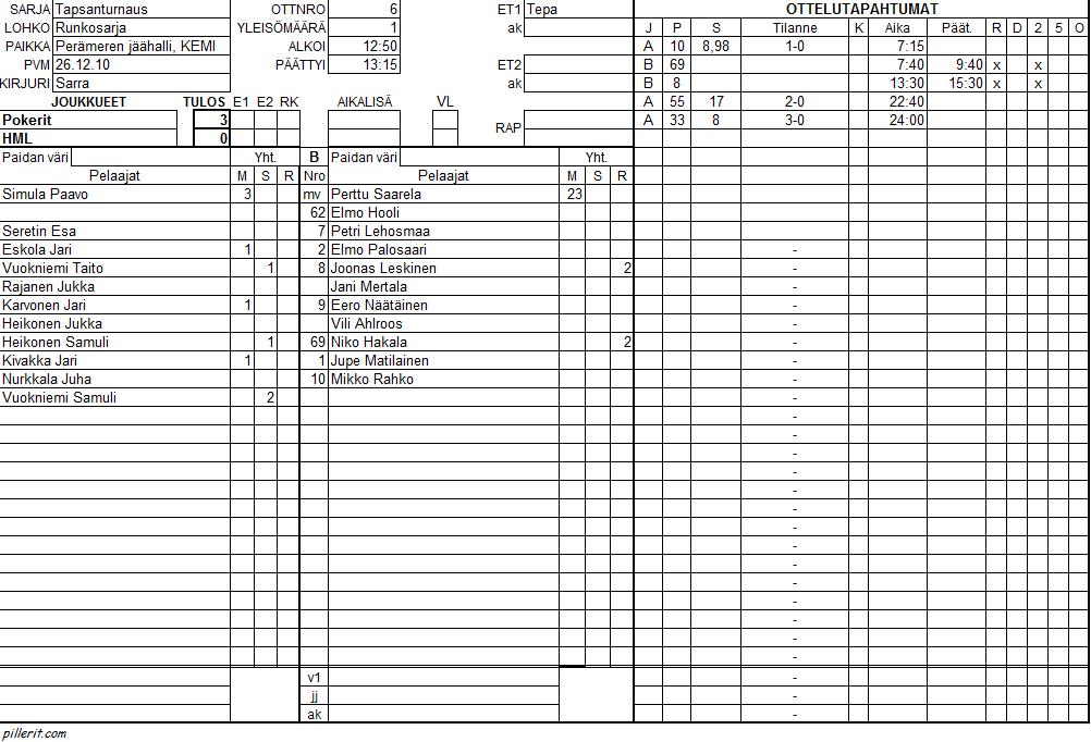 | Pokerit | 4 | 3 | 0 | 1 | 10 | 7 | 3 | 6 |